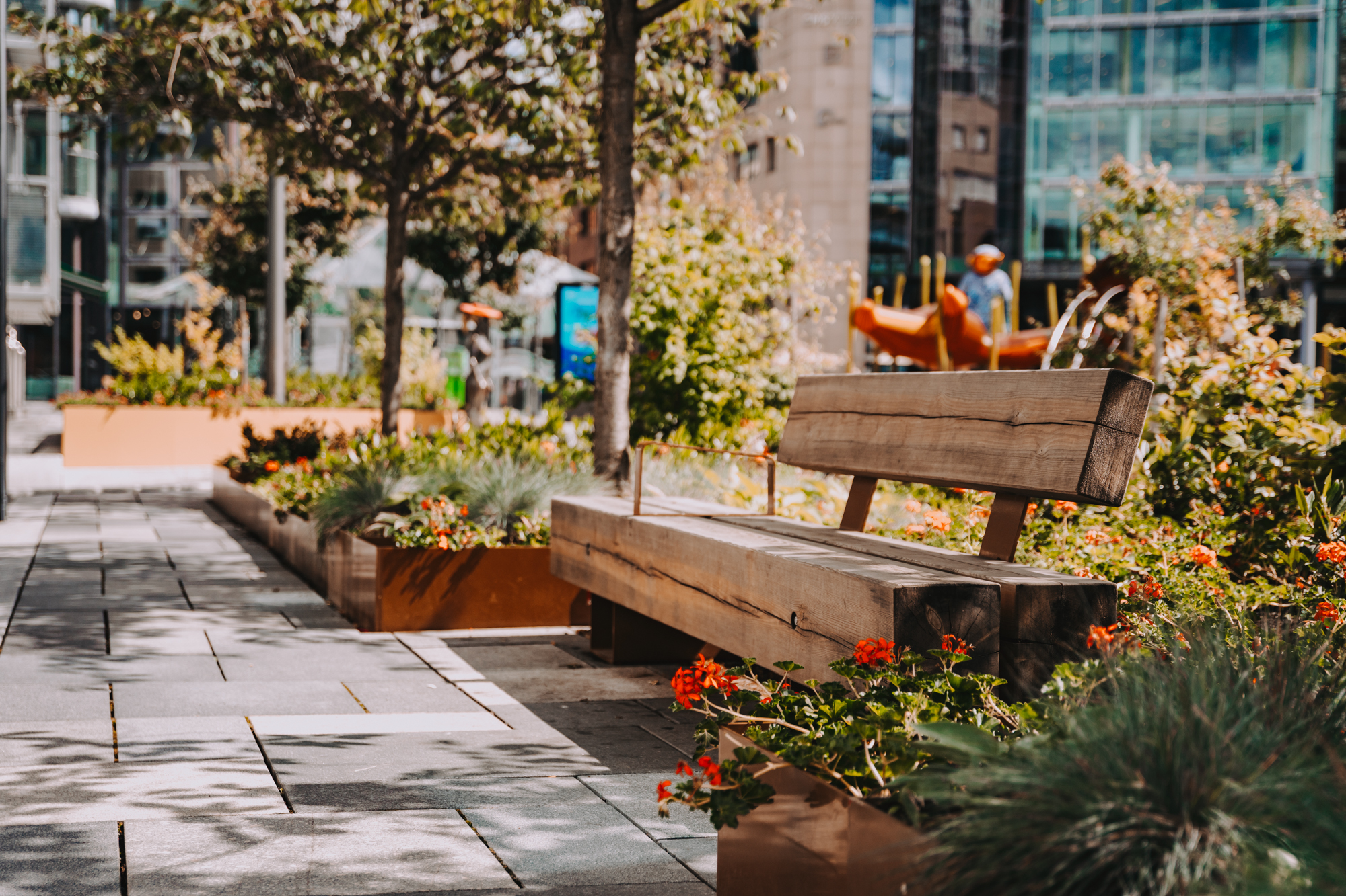 RÅDE benken er stilren og meget godt egnet i alle offentlige bymiljøer. Produsert og levert av Kobe Utemiljø.